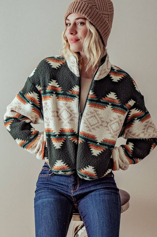 Aztec Sherpa Cropped Jacket