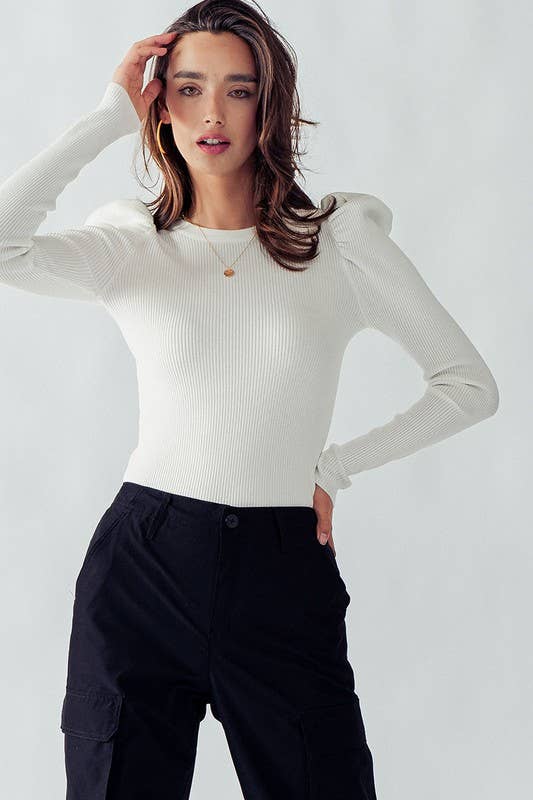 Puff Sleeve Rib Knit Sweater